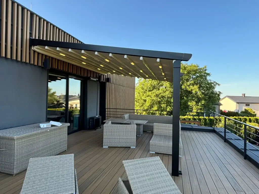 - تزيد هذه المظلات من مقاومة الهيكل للحرارة والظروف الجوية، أيضًا توفر ظلًا مريحًا للمساحات الخارجية.